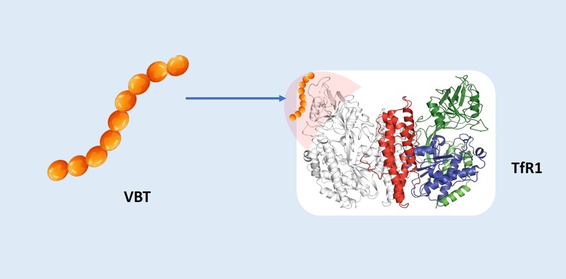 VBT 靶向胜肽為小片段蛋白質,可結合轉鐵蛋白受體,透過與轉鐵蛋白的相同的輸送機制,可實現攜帶藥物穿越寫腦障蔽 (BBB)。VBT 靶向胜肽結合於轉鐵蛋白受體的頂端,不影響正常生理轉鐵蛋白的運送。VBT 靶向胜肽在血清中有良好的穩定度,同時可以耐受極低的 pH, 可做為潛在腸胃投藥的傳輸工具。